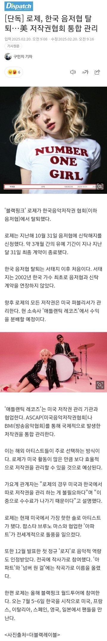 로제 서태지 이후 첨으로 음저협 탈퇴했네