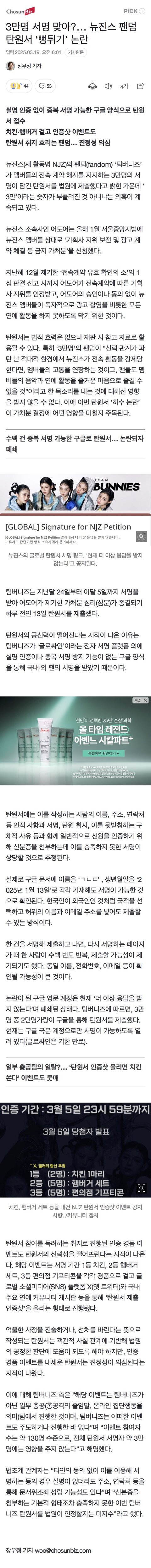 3만명 서명 맞아?… 뉴진스 팬덤 탄원서 ‘뻥튀기’ 논란