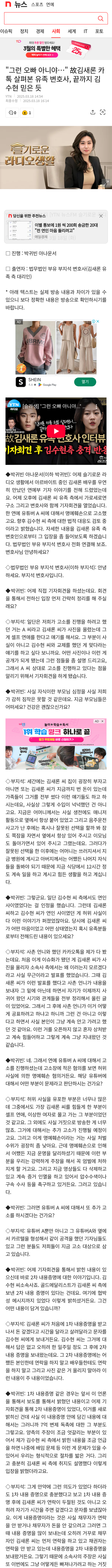 그래서 혼자 이거를 끙끙 앓고 떠안고 결국에는 김수현 씨 생일날 잘못된 선택을 하지 않았을까 생각을 하는데요. (후략)