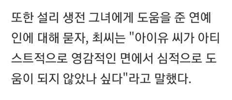 설리 생전에 젤 도움이 많이 됐다고함 아이유 억까좀 멈춰