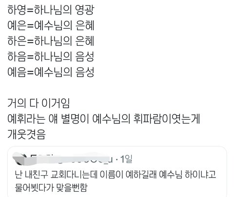 애 이름에 맘대로 종교 처바르는거 학대같음