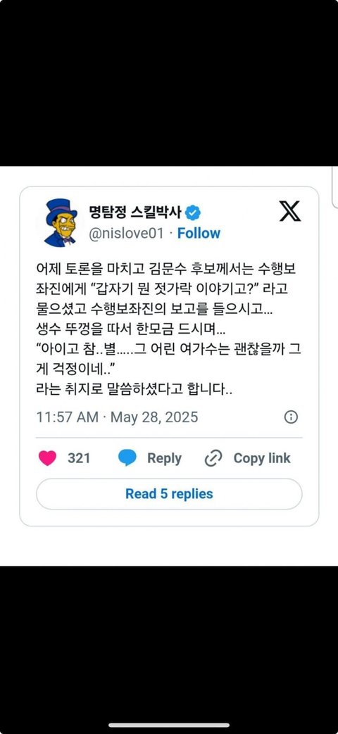 Best솔직히 카리나는 김문수 지지선언하고 "좌파 반국가세력 척결"이라고 글올려도 이해해줘야함ㅋㅋㅋ