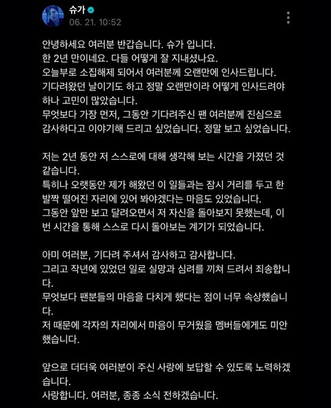 민윤기 위버스 왔다