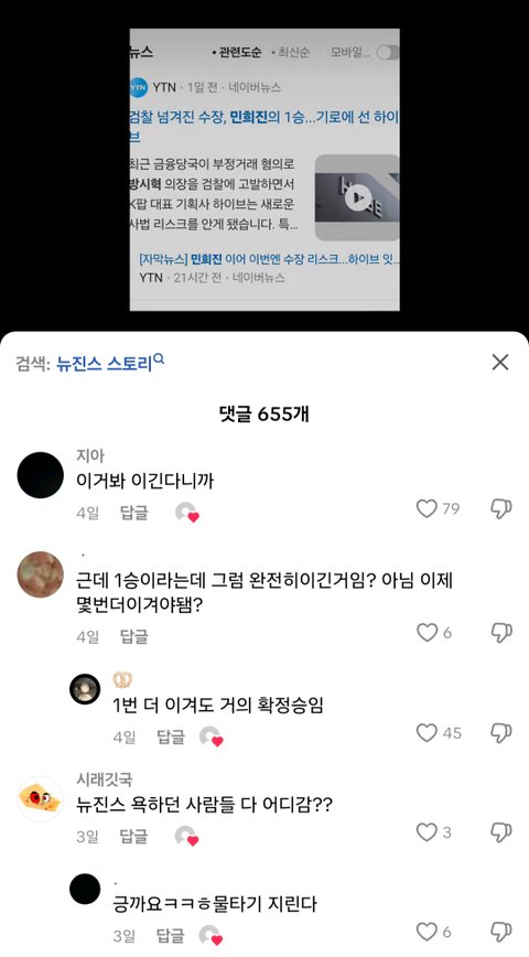 너네 틱톡 뉴진스 여론 봄?