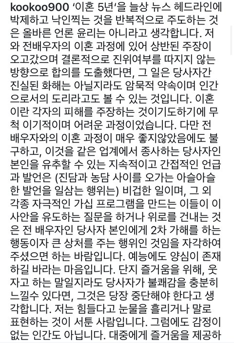 본인이 이혼 과정 전국민 앞에서 생중계하면서 오연서 서현진 류화영 등 상관 없는 사람 머리채 잡았을 때 이정도는 각오했었어야지 오연서 류화영이 아무 죄 없이 언급되고 악플 받은 건 괜찮고 본인 이름 언급되는 건 싫고?