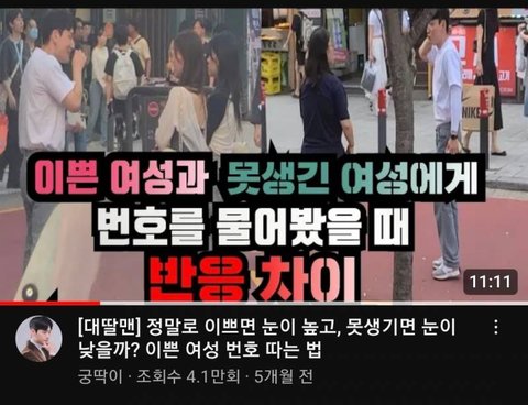 이쁜 여성과 못생긴 여성에게 번호를 물어봤을때 반응차이