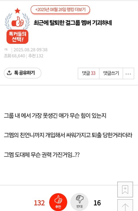 이제는 그 멤버 탈퇴까지 최정은 탓함??
