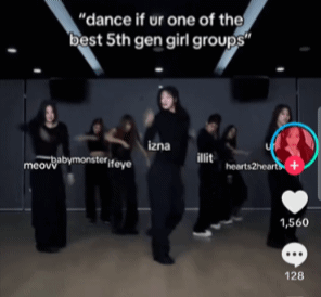 5세대 걸그룹 댄스 서열도 뜸 센터에 이즈나 izna 양 옆에 이프아이 ifeye 아일릿 illit 그 옆에 베이비몬스터 babymonster 하투하 그리고 양날개 미야오 meow 유니스 unis 4세대 에스파 아이브 뉴진스 르세라핌 스테이씨 케플러 5세대 아일릿 베이비몬스터 미야오 이즈나 하투하 키키 유니스 이프아이 1