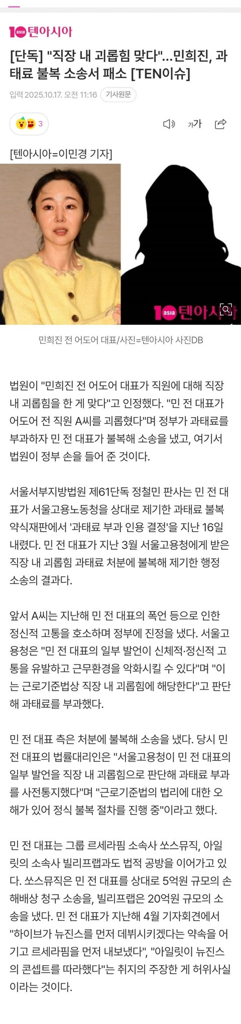 민희진 불복소송 패소