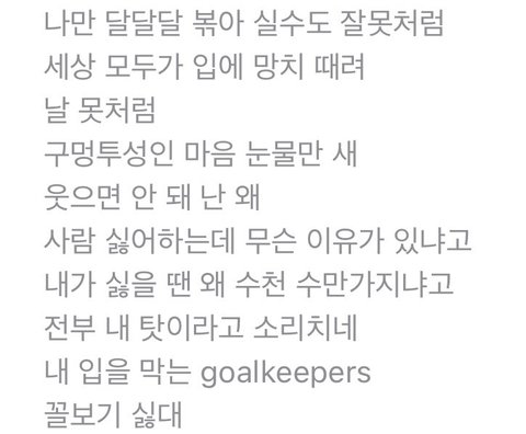 명재현 원도어들한테 꼭 들려주고 싶은 노래 있다면서 불러주고 간 노래 가사 좀 봐 다 알고 있으면서 내색도 안 내고 조용히 팬레터에 하트만 누르고 가는 애가 이렇게라도 우리한테 티 내준거… 괜찮은 척 아니고 정말 후련해보여서 다행인데 그동안 어떤 마음으로 견뎠을지 너무 가슴이 아프다 내년에는 행복만 하자 우리 보넥도 다 잘 될거야3111