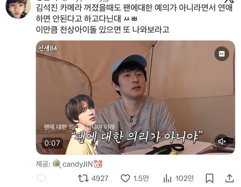 연애하는건 팬에대한 예의가 아니다 ??