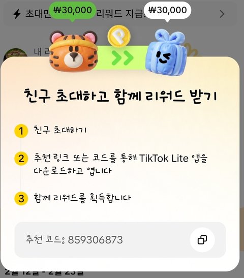 초대코드 입력해서 가입하고 영상만 봐도 포인트가 모여서 매일 매일 틱톡 라이트와 함께 하는 나