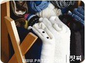 니트가 늘어지지 않도록 하는 아이디어로 니트 전문 매장에서는 모두 이 방법으로 걸어둔다. 오른쪽 소매는 왼쪽 어깨에, 왼쪽 소매는 오른쪽 어깨에 걸칠 것.