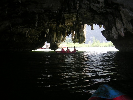 동굴을 통과하는 카누팀