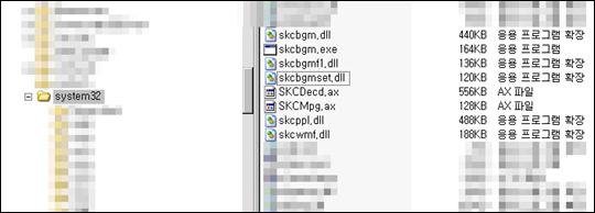 네이트온NateOn이 설치되어 있는 컴퓨터에서는, skcbgmset.dll 파일이 /Windows/System32 디렉토리가 아닌 /Program Files/NateON/BIN에 위치한다고 합니다. 좋은 정보를 주신 NATEON에서는님께 감사드립니다.