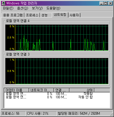 9) 나는 다음과 같은 네트워크 자원 이용률 챠트를 볼 수 있게 됨.