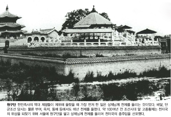 주목할 것은 바로 대한제국! 조선의 실질적 마지막 임금이신 고종 황제께서 1897년 국호 '조선'을 '대한제국'으로 바꾸고 황제로 즉위하심으로써 '대한'이라는 단어가 우리 역사 속에 등장하게 되었다. 고종께서는 원구단에서 천제를 앞두고 신하들에게 국호에 대해 다음과 같은 제안을 하셨다 한다.