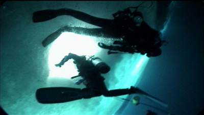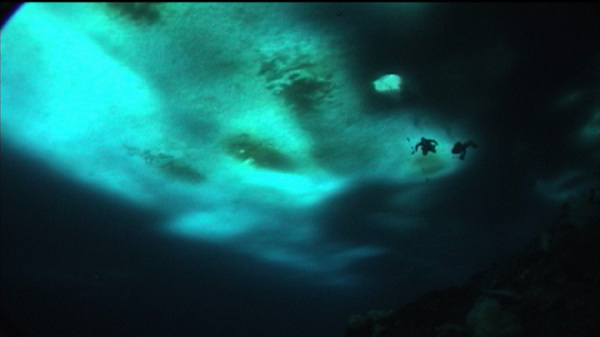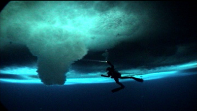 스쿠버 다이빙 연구자들에 대한 다큐멘터리 장면이, 우주탐험가가 외계 생명체와 마주친 장면이 되었다.