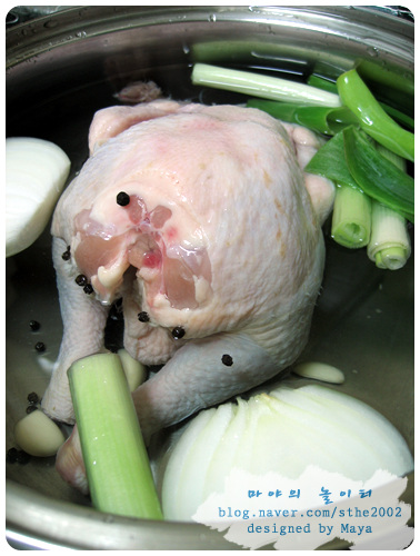 끓는 물에 닭을 넣으면 잡냄새나 핏물이 빠져나오는 걸 막을 수 있다는군요.