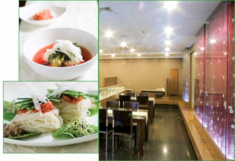 12년간 삼성동 터주대감으로 자리를 지켜온 한정식 전문점 만나가 지난 4월 분당으로 보금자리를 옮겼다. 심플하고 모던한 인테리어로 파티션을 활용해 자유자재로 공간을 연출할 수 있어 소규모 가족 모임이나 연회, 접대 장소 등의 다양한 모임을 가질 수 있다. 날씨가 더워지면서 각종 반찬들로 차려진 한정식과 더불어 아삭아삭한 열무를 곁들인 시원한 열무냉면과 매콤새콤한 김치로 맛을 낸 비빔면을 즐겨 찾는다고. 최고의 맛을 내기 위해 육수는 물론 고명 만들 때도 정수 된 생수만을 사용할 만큼 재료 선정에 엄격하다.