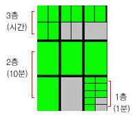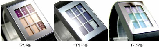 9개의 블록에 액정불빛이 들어온 블록을 읽어 시간을 알아냅니다 쉽게 1,2,3 층으로 나타내어보면 3층은 시간만 나타 냅니다 2층과 1층은 10분단위를 나타냅니다 구석탱이 1층방은 1분단위가 세들어 삽니다 9조각으로 쪼개져있죠 ^^; 연습하면 ↓
