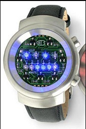 푸른불빛의 LED로 2진수의 시간을 표시합니다