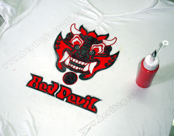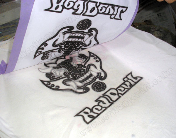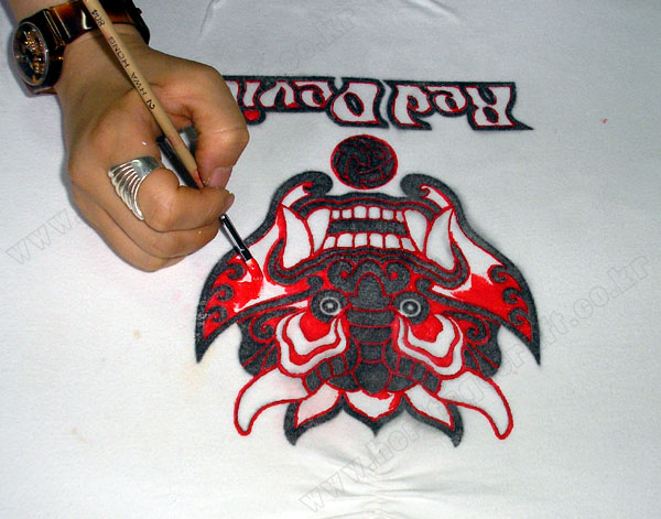 ▣완성된 "붉은 악마" 티셔츠의 모습."락카신나"의 그림 전사 방식을 이용하면 복잡한 그림도 쉽게