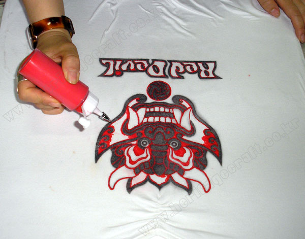 붉은 악마의 그림이 아니어도 어떤 그림도 이러한 아주 간단한 방법으로 전사가 티셔츠에 가능하다.