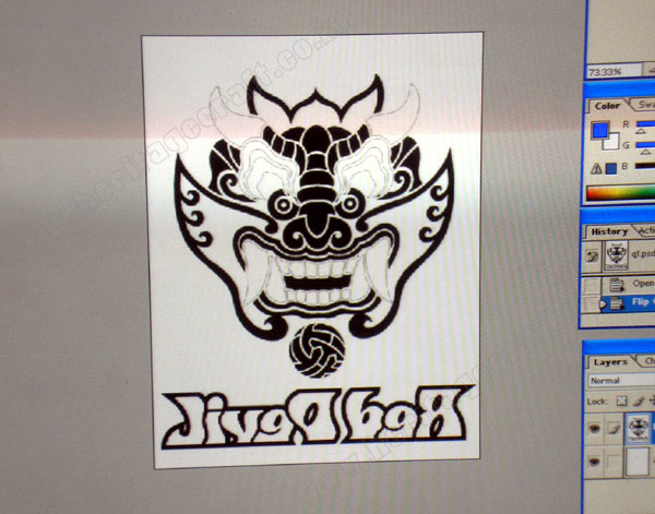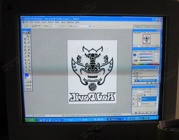 그림이나 "포토샾"을 통하여 외곽라인작업을 할 수 있다.글씨가 있기 때문에 수평뒤집기를 한 것이다.