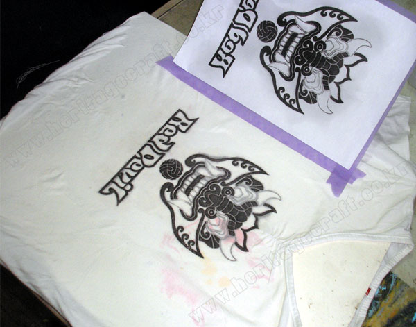 ▣그림을 띄어낸 후 젖어 있는 "락카신나"를 충분히 말린후 헤리티지공예의 섬유전용물감으로