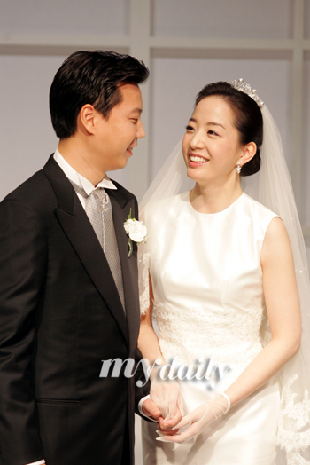 27일 오전 11시 서울 용산구 한남동 하얏트 호텔 그랜드 볼룸에서 현대 가(家) 故 정몽우씨의 3남 정대선씨와 KBS 노현정 아나운서가 백년가약을 맺었다.KBS 윤인구 아나운서가 사회를, 한승주 전 외교부 장관이 주례를 맡아 비공개로 진행된 이들 커플의 결혼식은 양가 가족, 친지, 친구들로 이루어진 800여 하객이 참석한 가운데 별다른 이벤트 없이 30여분만에 간단하게 끝났다.주례를 맡은 한승주 전 외교부 장관은 "두 사람의 혼인은 유명세를 탄 만큼 결혼 후에도 여러 사람들의 관심이 많으리라는 것을 항상 염두에 두어야 한다"며 "많은 이들의 관심이 집중될 수록 더 겸손하고 진지한 마음 자세로 살아야 한다"고 당부했다.또 "항상 서로의 일에 대해 존중하고 힘든 일이 생겨도 화합하는 자세로 잘 헤쳐 나가길 바란다"며 두 사람의 앞날을 축복했다.이어진 축가는 소프라노 김가영 씨 등이 맡아 엄숙한 분위기를 연출했다. 하객으로는 KBS 아나운서 황수경·황정민·김보민·강수정·신영일, 방송인 김제동·김흥국·지석진 탤런트 강부자 등이 참석해 자리를 빛냈다.한편, 두 사람은 결혼식 다음날인 28일 미국 하와이로 신혼여행을 떠나며, 신접살림은 정씨가 유학중인 미국 보스턴에 차릴 예정이다.숱한 화제 속에 '8월의 신부'가 된 노현정 아나운서는 경희대학교 아동주거학과를 졸업하고 2003년 1월 KBS 29기 공채 아나운서로 입사했다.지난 3월 국립국어원 홍보대사와 6월 보건복지부 건강치아 홍보대사로 위촉됐으며 KBS '스타골든벨', '상상플러스' 등에서 활약한 바 있다.신랑 정대선씨는 현대 창업주인 정주영 회장의 넷째 아들인 정몽우 전 현대알루미늄 회장의 셋째 아들로 지난해까지 현대차 관련회사인 BNG스틸에서 대리로 근무했다. 기사&사진출처 (JES)