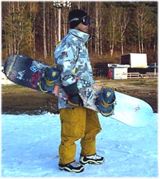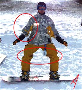 이 상태로 프론트사이드쪽을 약간 들어 슬로프면과 각을 만들고 백사이드 엣지를 주면, 아무리 경사가 심한 슬로프라할 지라도 딱 서 있게 된다.