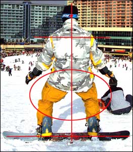 사이드슬리핑으로 익힐 수 있는 것은 위에서 말한 바와 같이 뽀드위에서 BBP를 확실히 유지하는 것이다. 또한, 뽀드를 탈 때에 양 발에 배분되는 힘의 강도를 조절하는 방법을 감지하는 것이라 하겠다. 자, 아래 사진을 보자.