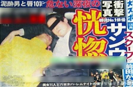 완전히 눈이 풀린 권상우는 이어 롯본기의 가라오케 ‘P’로 자리를 옮겼다. 이곳에서 드라마 ‘천국의 계단’ 주제가를 열창한 후 술에 취해 소파에 쓰러진 채 잠 들었다. 양복차림의 남자와 함께였다. 도쿄스포츠는 바로 이 순간을 촬영했다.