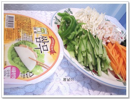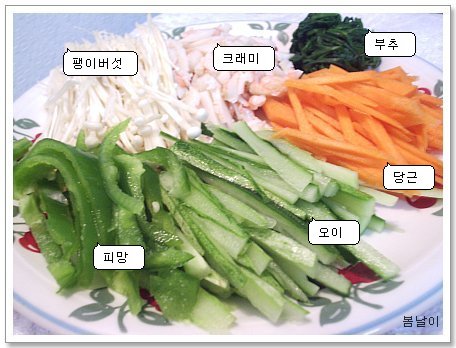 부추만 살짝 데쳤구~다른건 생으로 할거예요~기름에 살짝볶아도되는데~전 깔끔하게 먹고싶어서 그냥사용했어요..사실 볶는것도 일이잖아요~~^^::생으로해도 맛이 좋아요..