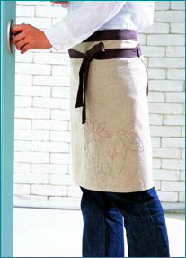 랩 스커트를 연상시키는 린넨 에이프런은 만들기 쉽고 실용적인 핸드메이드 아이템. 밑단에 자수나 패치워크 등 자신이 원하는 디테일로 포인트를 준다. 완성치수 108×52cm