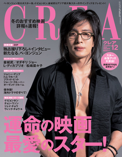 배용준이 일본 패션지 크레아 표지모델로 나선다.1일 배용준의 소속사는 배용준이 일본 최고의 패션지 크레야 12월호 표지모델로 나선다고 밝혔다.그동안 외국 여성 모델들이 커버를 장식해 왔지만 12월호에서는 이례적으로 남성인 배용준이 표지를 장식한 것.배용준의 소속사에 따르면 1일 오전 배용준이 블랙 셔츠를 오픈하고 섬세한 액세서리를 착용한 새로운 스타일의 표지 컷이 일본에서 온라인등을 통해 공개되자 배용준의 일본 홈페이지에선 팬들이 놀라움과 설레임을 감추지 못하며 큰 호응을 보이고 있다.11월 중순에 발간될 크레아 12월호에서는 배용준의 특집 화보 및 인터뷰가 수록되어 있다.이 패션지는 파격적으로 배용준의 화보 및 인터뷰를 20페이지에 걸쳐 특집 부록으로 수록할 예정.배용준은 이번 인터뷰를 통해 음악과 영화등 자신이 좋아하는 것들과 근황에 대한 이야기를 들려줄 계획이다.이번 표지 및 화보는 지난 7월 일본을 방문했을 때 극비리에 촬영된 것으로 톰크루즈, 브래드 피트 등 세계적 배우들과 작업해온 아시아의 유명 사진작가 레슬리 키와 작업했다.배용준은 레슬리 키와 작업한 사진 2점을 아시아 지역을 돕는 자선 사진전 "수퍼 스타즈(Super Stars)" 등에 출품, 아시아 지역 톱스타 300여명과 함께 기부 활동에 동참하기도 했다.한편 배용준은 일본에서 방영되는 초콜렛 CF에서 달콤하고 부드러운 모습을, 일본 세콤 CF에선 믿음직한 남성적인 모습을 선보이며 대조적인 매력을 어필하고 있다.현재 배용준 내년 초 방영될 드라마 '태왕사신기' 촬영에 매진하고 있다. 기사&사진출처 (스포츠서울)