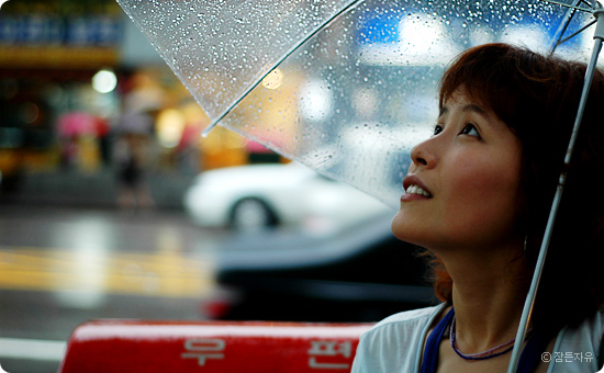 '비닐우산' 이라는 제목의 사진이다. 사진속의 모델은 친한 언니에게서 예쁜 비닐우산을 선물받았다며 좋아했다. 인물의 얼굴(눈)과 비닐우산에 맺힌 빗방울까지 초점이 맞도록 해서 주제를 부각 시키고 싶었다. 만약 이사진을 똑딱이로 찍었다면 뒷배경에 있는 자동차, 약국, 행인들의 모습들까지 선명하게 나와서 산만한 느낌의 사진이 됐을 것이다. 여기까지 글을 읽었다면 똑딱이는 SLR에 비해 안좋은 카메라라는 생각이 들 수도 있을것 같다. 그러나 꼭 그렇지는 않다.