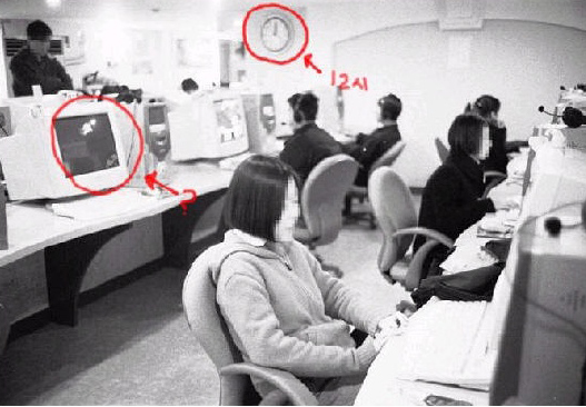 그런데,좌측 중간부분의 모니터를 자세히 보라.이상한 물체가 비쳐저 있다는것을 알수있다