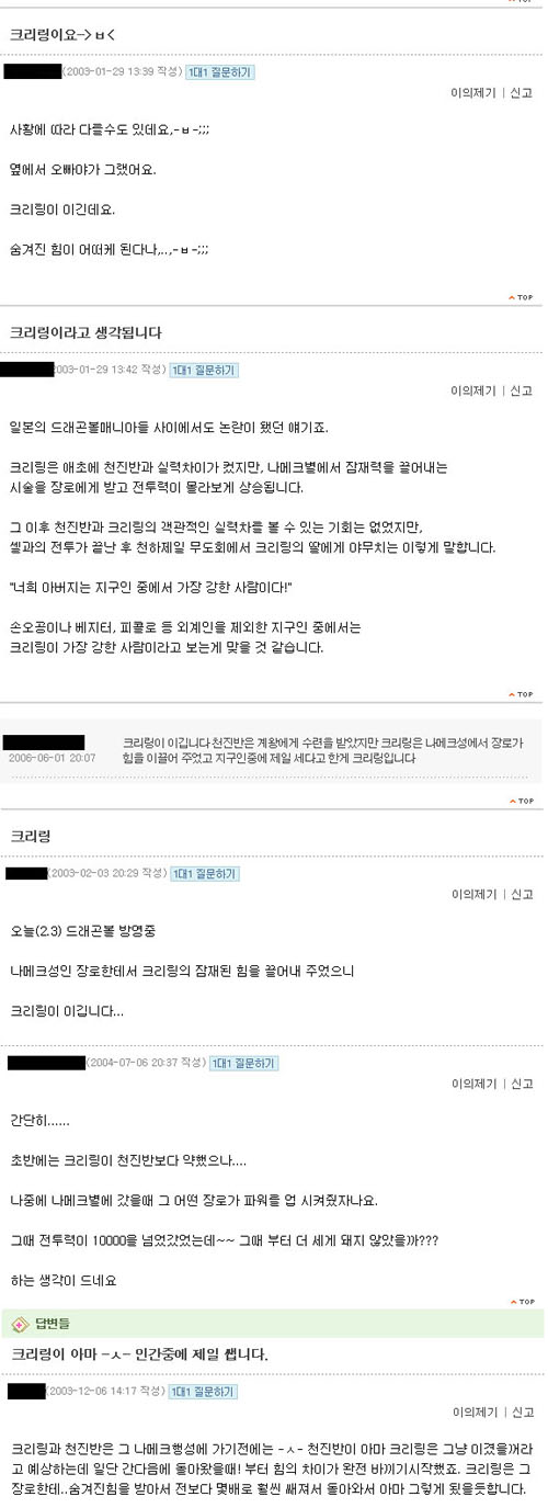 왜냐하면, 크리링 쪽이 강하다는 전제하에 그 근거자료를 만화책이나 애니에서