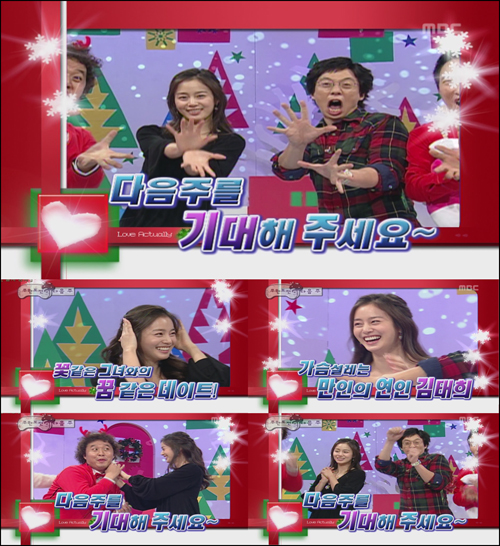 김태희가 생애 두 번째로 예능 프로그램에서 모습을 드러낸다.김태희는 2001년 데뷔 이후 그동안 예능 프로그램에서는 모습을 보기 힘들었다.3년전 단 한 차례 KBS '해피선데이 - MC대격돌'에 출연한 것이 유일한 예능 프로그램 출연 경력이다.그동안 드라마에만 출연해오다 오는 21일 개봉하는 영화 '중천'으로 첫 스크린에 주연 데뷔하는 김태희는 개별 인터뷰를 자청하고 각종 시사회에 참석하는 등 적극적으로 홍보에 나서는 한편, 급기야 생애 두 번째 예능 프로그램 출연도 감행했다.김태희는 7일 오후 서울 여의도동 MBC방송센터에서 진행된 '무한도전' 녹화에 특별 출연해 유재석 박명수 등 6명의 MC를 깜짝 놀래켰다.크리스마스 특집으로 진행된 이번 녹화 도중 제작진은 MC들에게 "크리스마스 선물을 준비했다"며 김태희와 전화 연결을 시켜줬다.그러자 유재석 등 MC들은 일제히 "거짓말하지 말아라" "또 속을 줄 아느냐?" 등 격렬한 불신의 반응을 보였고, 실제로 김태희와 통화를 하는 중에도 내내 "당신 누군데 이렇게 성대모사를 잘하느냐?"며 끝내 믿지 않았다고.통화를 마친 후 김태희는 직접 스튜디오에 모습을 드러내 MC들과 일일이 인사를 나눴고, 뜻밖의 등장에 MC들은 일순 당황해 하다 일제히 환호하며 김태희를 반겼다.한편 최고의 인기를 구가하고 있는 MBC '무한도전'은 16일과 23일에는 크리스마스 특집, 30일에는 연말 특집으로 방송될 예정이다. 기사&사진출처 (뉴스엔)