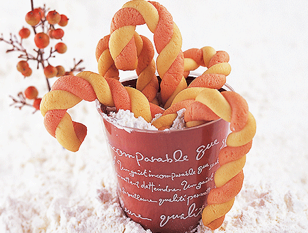 5_휴지시킨 반죽을 모두 막대기처럼 길게 민 뒤 두 가지 반죽을 함께 꼬아 지팡이 모양을 만든다.