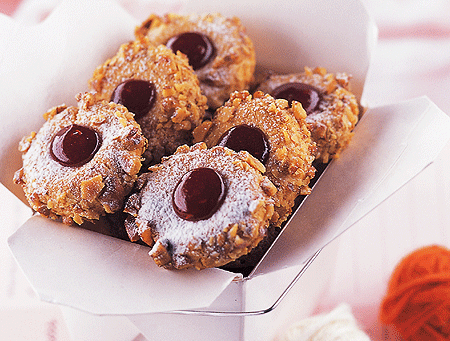 버터 100g, 슈거파우더 60g, 소금 약간, 달걀노른자 2개, 박력분 150g, 다진 호두 70g, 산딸기잼·달걀흰자 적당량씩