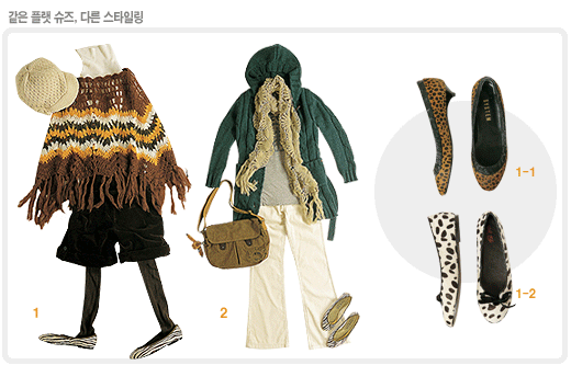 보이 미트 걸 룩으로 연출해도 좋다. 스니커즈보다 훨씬 가볍고 여성스런 느낌.