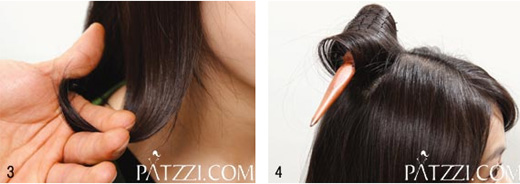 안으로 들어가도록 컬을 만든 옆머리를 다시 바깥쪽으로 뻗치도록 롤에 감아 드라이 열을 쐬어준다. 곱슬기 없는 헤어에 바깥쪽으로 뻗치는 컬을 만들려면 안으로 만 후 바깥말기를해야 자연스럽고 예쁘게 완성되기 때문.