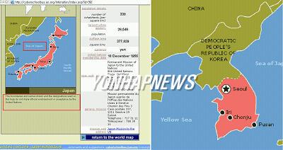 2일 사이버 외교사절단 반크에 따르면 사이버 스쿨버스를 방문해 메인 왼쪽에 'Country at A Glance'란 메뉴를 클릭하면 세계 지도가 나오는 데 여기에서 남한과 북한 일본을 각각 클릭하면 큰 글씨로 '일본해(Sea of Japan)'라고 단독 표기한 지도를 발견할 수 있다.