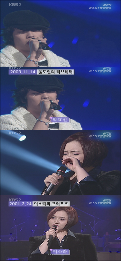 가수 박효신 역시 한 음악 프로그램에서 사랑과 관련된 노래를 부르는 도중 눈물을 흘려 팬들의 궁금증을 자아냈다.
