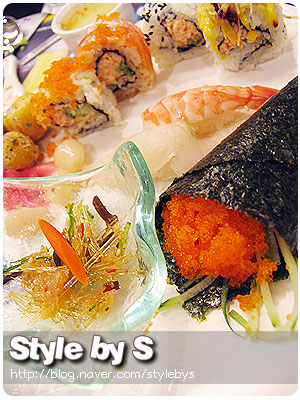 뷔페는 샐러드, 전채요리, 롤, 초밥 등을 주 메뉴로 이외에도 수프, 죽, 케이크 등 90여 가지 메뉴로 구성되어 있다. 가장 인기가 있는 것은 역시 초밥. 요리사가 빠른 손놀림으로 연신 초밥을 내려놓아도, 금세 손님들의 접시로 옮겨가진다. 다양한 종류의 과일, 스시, 야채 등을 이용해 만든 퓨전 롤은 보기에도 예쁘고 맛도 좋아 여자 손님들의 마음을 빼앗는다. 빵과 케이크도 모두 직접 만들고 있으며, 애피타이저와 디저트류는 적은 양씩 개별 접시에 담아놓아 보기에도 좋다.