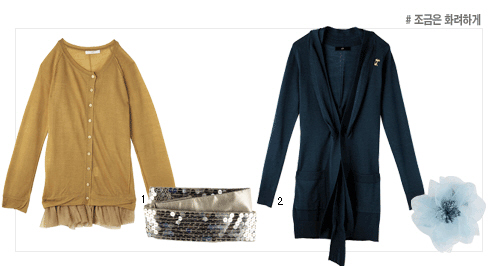약속시간이 다가오면 여성스럽고 드레시한 카디건으로 부드러우면서 화려해지자. 적당한 소품으로 포인트를 줄 것.