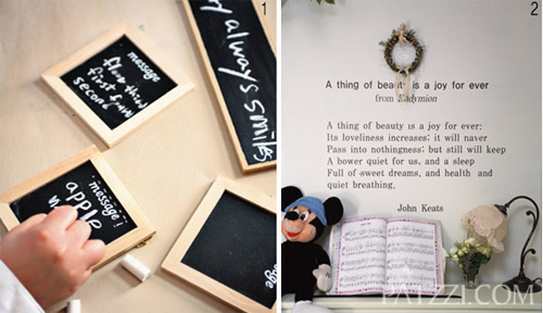2_영시나 명문장을 시트지에 찍어 벽에 붙였다. 장식 효과는 물론 학습에도 활용해 봄직한 아이디어다.